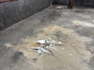 今回確認した屋上では、防水層の劣化とひび割れが複数箇所に見られ、