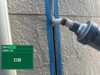 シーリング打設。 適切な厚みを確保しながら充填し、雨水侵入経路を確実に遮断します。