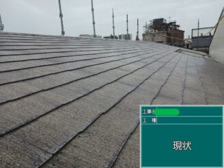 屋根全体に色あせと塗膜の劣化が見られ、保護機能が低下している状態でした。 そのため紫外線や雨水の影響を直接受けやすくなっており、早期メンテナンスが必要なタイミングでした。