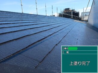 屋根上塗り完了。 光沢と防水性能が回復し、屋根材を長期間保護できる状態になりました。