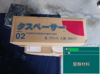 タスペーサー挿入。屋根材の縁切りを行い、内部への雨水滞留を防ぎます。 これを省略すると内部腐食の原因になります。