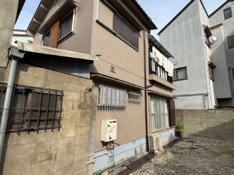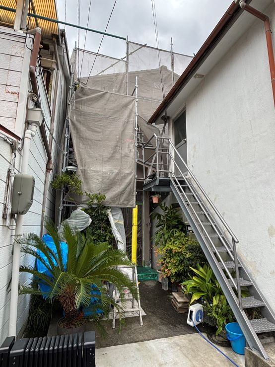 右面の隣地が接近してる事で塗装が長年出来ず、隣地の解体作業が終わったタイミングで弊社へご連絡いただきました。