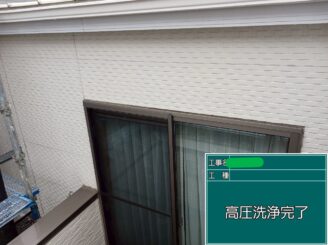 外壁 高圧洗浄完了。 塗装前の下地処理をしっかり行い、仕上がりの耐久性を高めます。