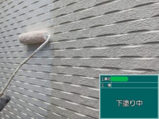 下塗り。 外壁材に塗料をしっかり密着させる工程です。