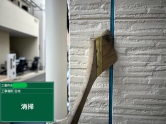 清掃。 新しいシーリング材がしっかり密着するよう、目地内部の汚れや粉じんを丁寧に除去しました。