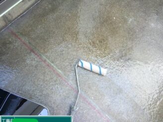 プライマー塗布。 下地と防水材を密着させるための重要な工程です。