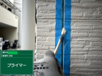 プライマー塗布。 下地とシーリング材の密着性を高めるため、専用プライマーを塗布します。
