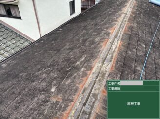 屋根現状 既存屋根は経年劣化により色あせや汚れが見られ、防水性能の低下が懸念される状態でした。今後の雨漏りリスクを考慮し、屋根カバー工事をご提案しました。