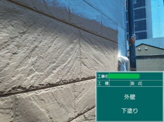 下塗り完了。外壁材に適した下塗り材を使用し、塗料の密着性を高めます。