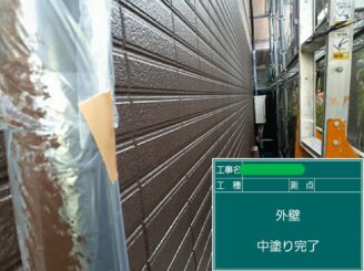 中塗り完了。中塗りでは塗膜に厚みを持たせ、耐久性を向上させます。 塗りムラが出ないよう、均一に丁寧に施工します。