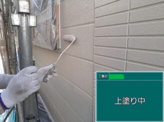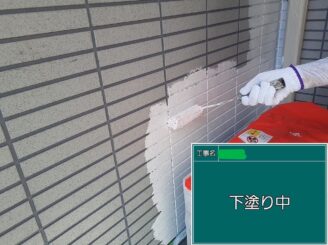 下塗り。 外壁の下地を整え、塗料の密着性を高めます。