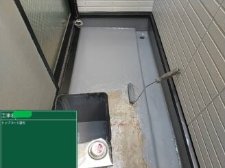 トップコート塗布。 仕上げにトップコートを塗布し、防水性能を高めました。
