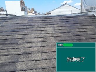 屋根 高圧洗浄完了。 塗装前の下地処理を丁寧に行い、塗料の密着性を高めました。
