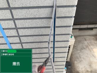 既存シーリング撤去。 劣化した既存シーリング材を丁寧に撤去します。