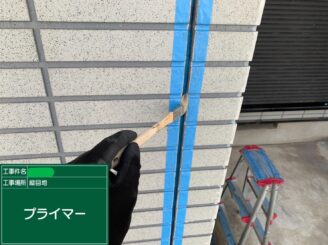 プライマー塗布。 下地とシーリング材を密着させるため、専用プライマーを塗布します。