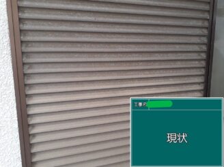 雨戸施工前。塗膜劣化と錆の発生が見られました。付帯部も放置すると劣化が進行します。