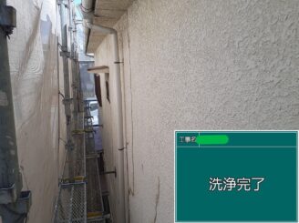 外壁高圧洗浄完了。目地や凹凸部まで洗浄完了しました。 塗装前に下地の状態を明確化し、補修箇所を最終確認します。ここでの確認が耐久性を大きく左右します。