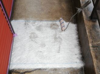 マット貼り。 ガラスマットを貼り込み、防水層を補強。耐久性を大きく向上させます。