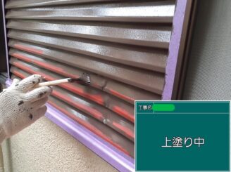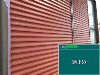 雨戸ケレン。 旧塗膜と錆を除去。密着性を高めるための重要な下地処理です。
