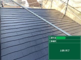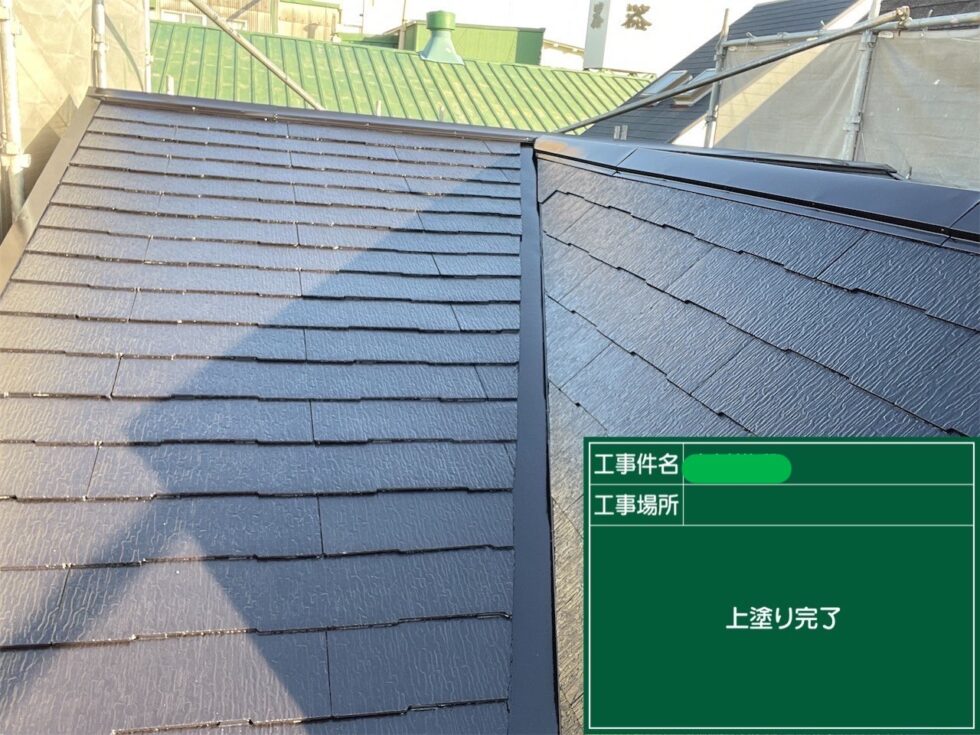 屋根塗装完了。 均一な塗膜が形成され、防水性能と排水機能が安定しました。
