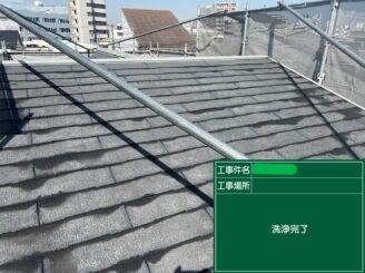 屋根高圧洗浄完了。 素地に近い状態まで整え、塗料の性能を最大限発揮できる状態にしました。