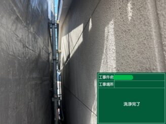 外壁高圧洗浄完了。 目地周辺まで洗浄が行き届き、下地処理工程へ移行できる状態になりました。