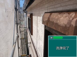 外壁高圧洗浄完了。 目地部まで洗浄し、シーリング施工へ備えます。