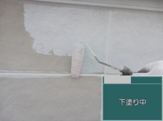 下塗り中 外壁材との密着を高め、塗膜の基礎を形成します。