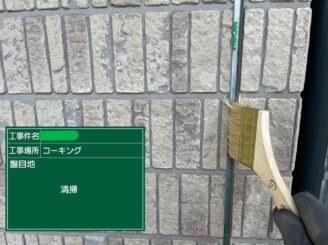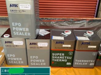 下塗り中。 外壁材に合わせた下塗り材を使用します。