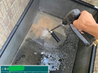 ベランダ 高圧洗浄完了。 防水施工に適した状態に整えました。