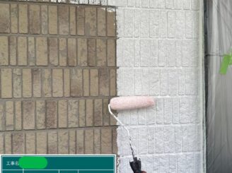 下塗り中。 下地と塗膜を密着させる重要な工程です。