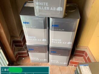 下地調整材。建物の状態に合わせ、最適な材料を選定しています。