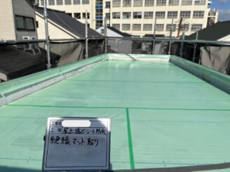 絶縁マット設置。下地の動きに対応できる工法で、再発リスクを軽減します。