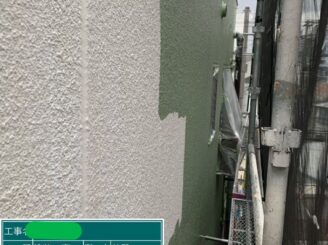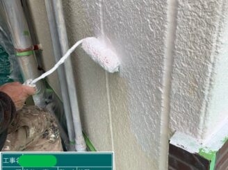 上塗り中。色ムラを防ぎ、美観と保護性能を向上させました。