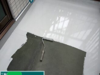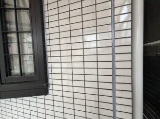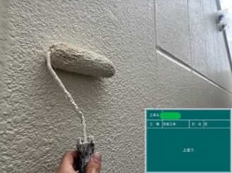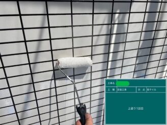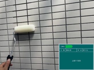 上塗り1回目中。 タイル表面を均一に塗装します。