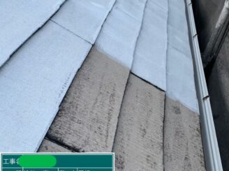 屋根 高圧洗浄完了。 洗浄ムラが出ないよう、屋根全体を丁寧に洗浄しました。