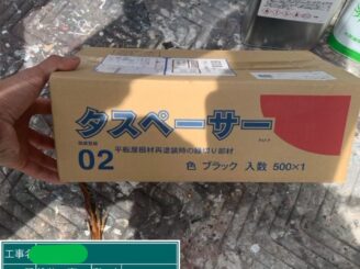 タスペーサ取付け。 屋根内部の通気・排水を確保し、雨水の滞留を防ぎます。