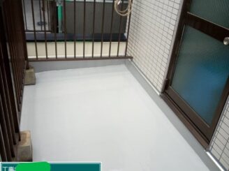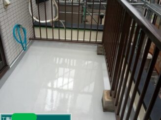 ベランダ 高圧洗浄完了。 防水材の密着性を高める下地処理です。