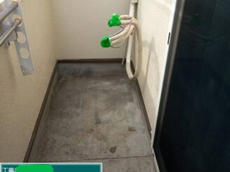 施工前(ベランダ)。 ベランダは雨水が溜まりやすく、劣化すると雨漏りの原因になります。今回は下地からしっかり整え、防水性能を回復します。