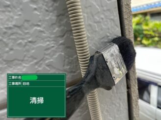 清掃。目地の中の汚れや細かなカスを清掃し、しやすい状態に整えます。仕上がりの美しさにも直結する大切な工程です。